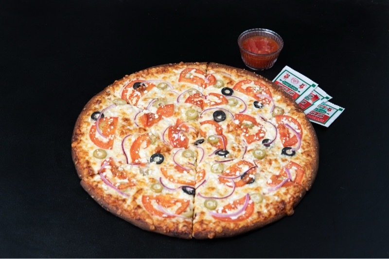 בצק עלים עם רוטב פיצה, גבינה צהובה ותוספות לבחירה .מוגש עם רוטב שום אדום ותבלין פיצה