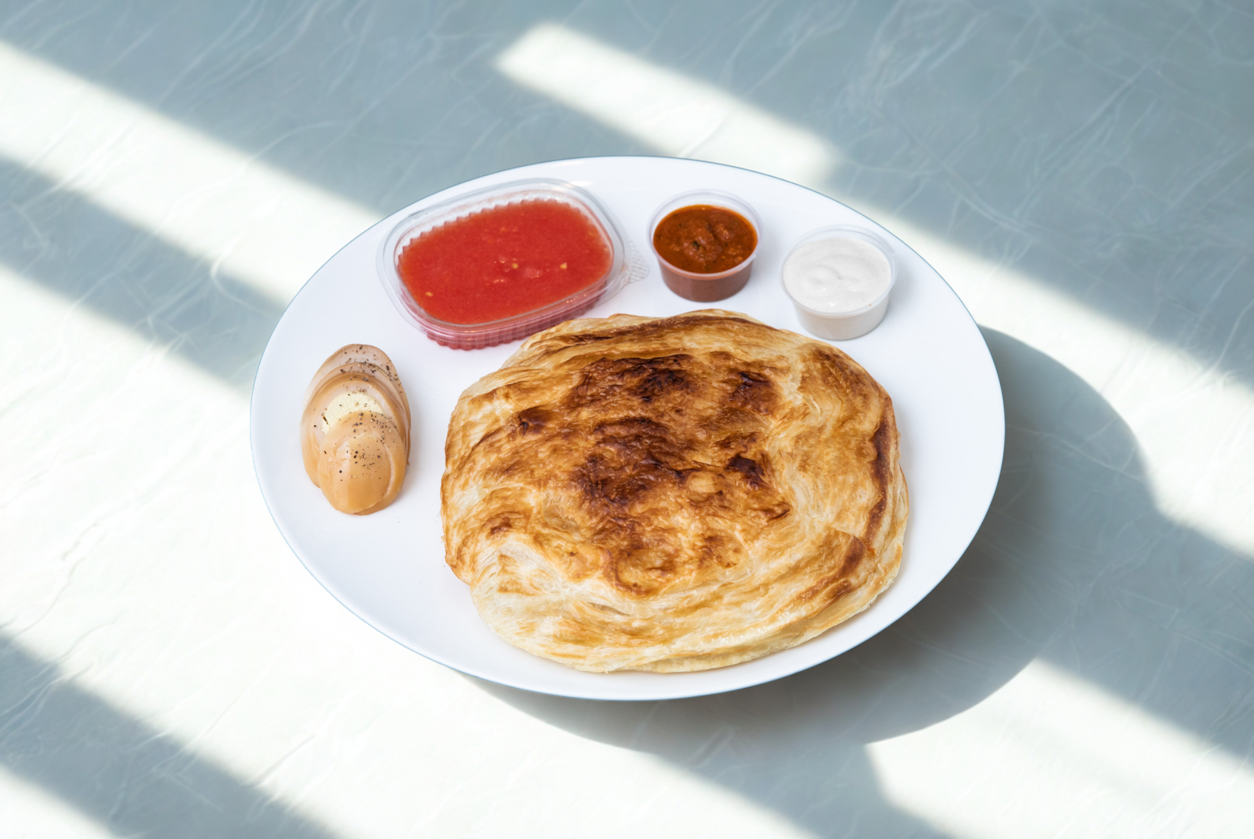 מוגש עם לחם שום, רוטב שום לבן ו2 רטבי אלף האיים בצד